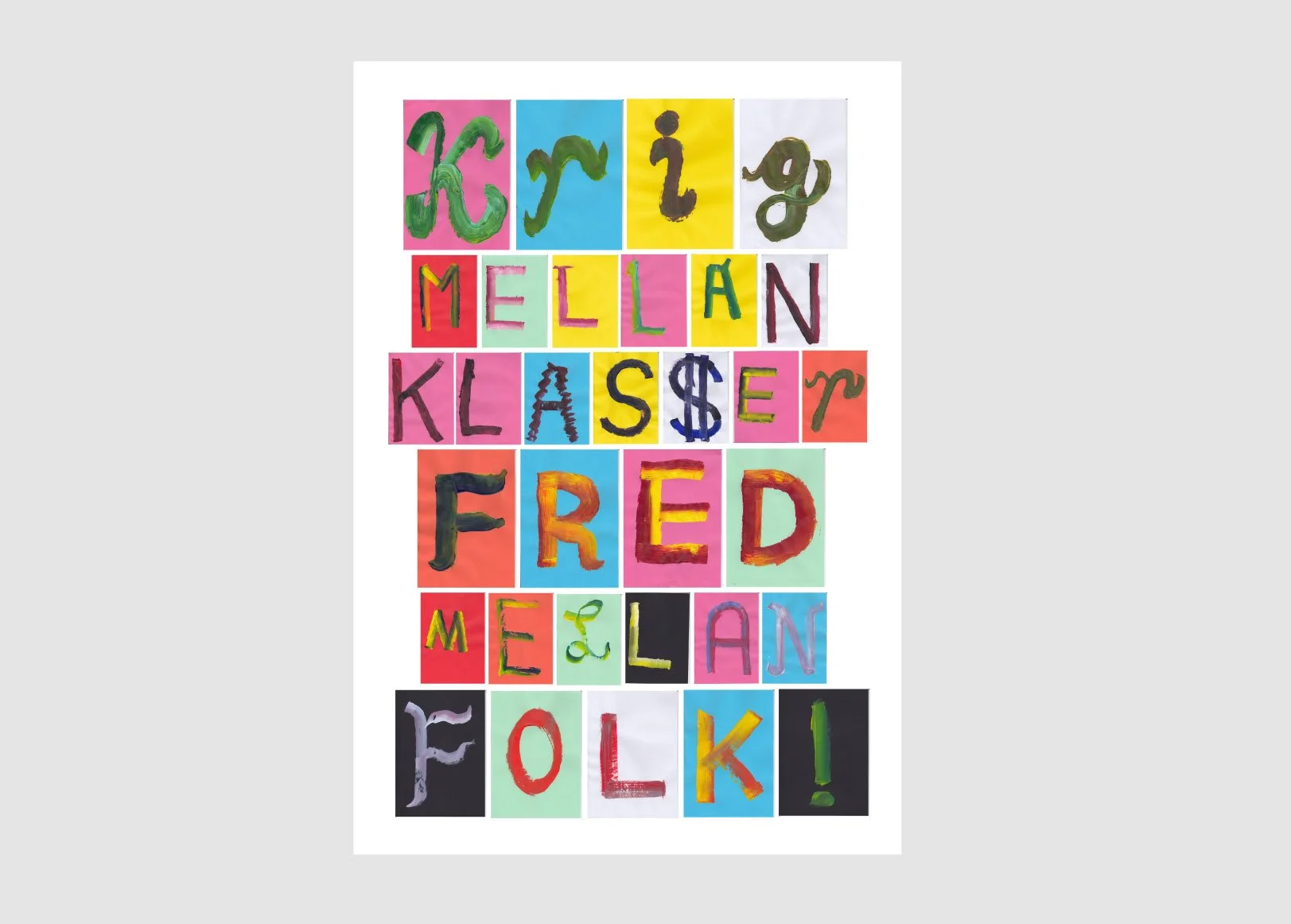 Poster: Fred mellan folk 2 mars Skrivet av Föreningen Krakel Poster, A3. Skapad tillsammans i cirkeln Zines – kollektivt skapande och radikal kreativitet. Ladda ner Föreningen Krakel https://www.krakelkrakel.com